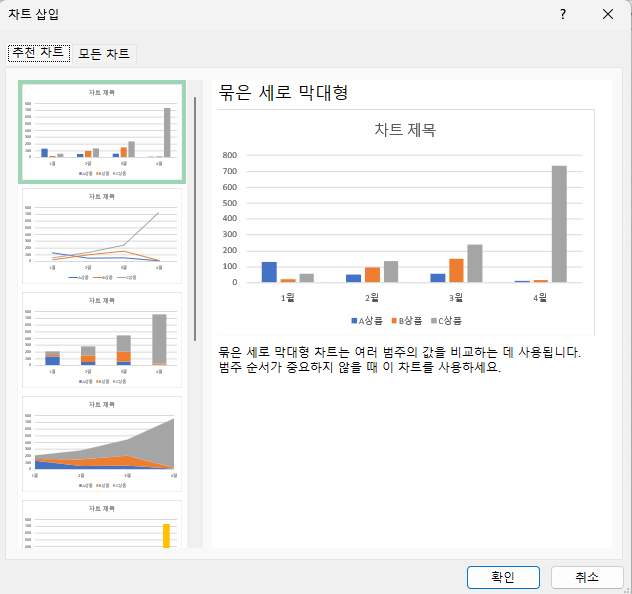 2. ALT + N + R (순서대로 눌러주세요) / 추천차트 만들기